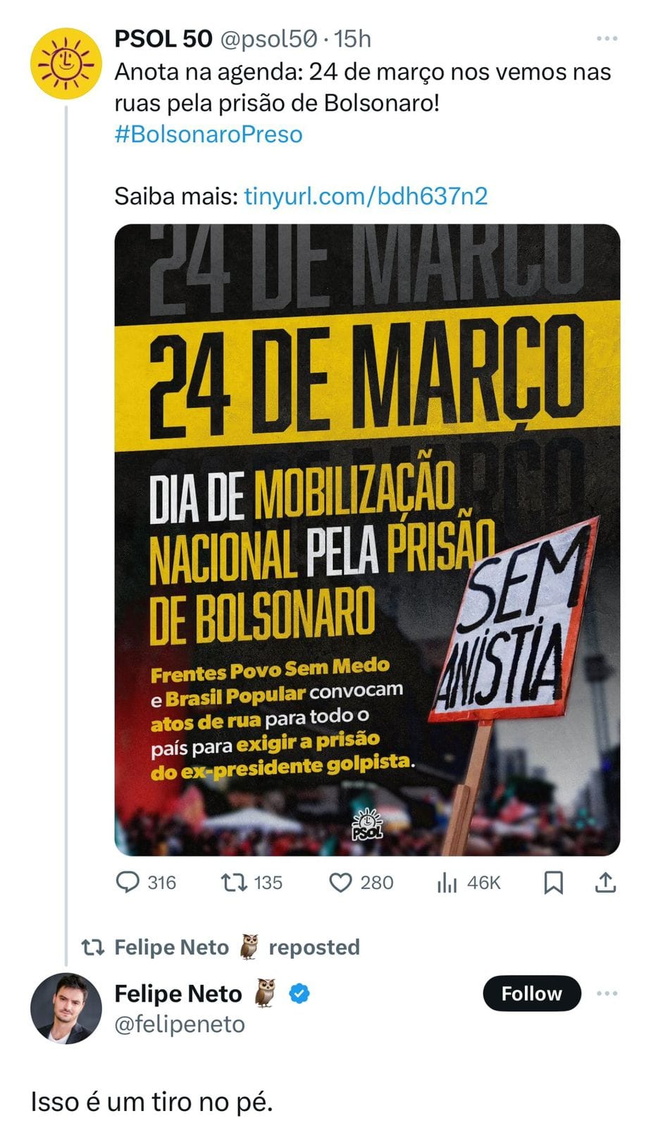 Marcada inicialmente para o dia 24 de março, a convocação realizada pelo PSOL, que posteriormente apagou o post de convocação em uma tentativa óbvia de ocultar suas intenções verdadeiras, revela não apenas a desorganização inerente a esses grupos, mas também uma falta de compromisso com o diálogo e a ordem democrática. Tais atos não buscam a justiça ou o bem-estar social, mas sim promover a discórdia e minar os esforços de conservação dos valores tradicionais e cristãos que muitos brasileiros prezam.
